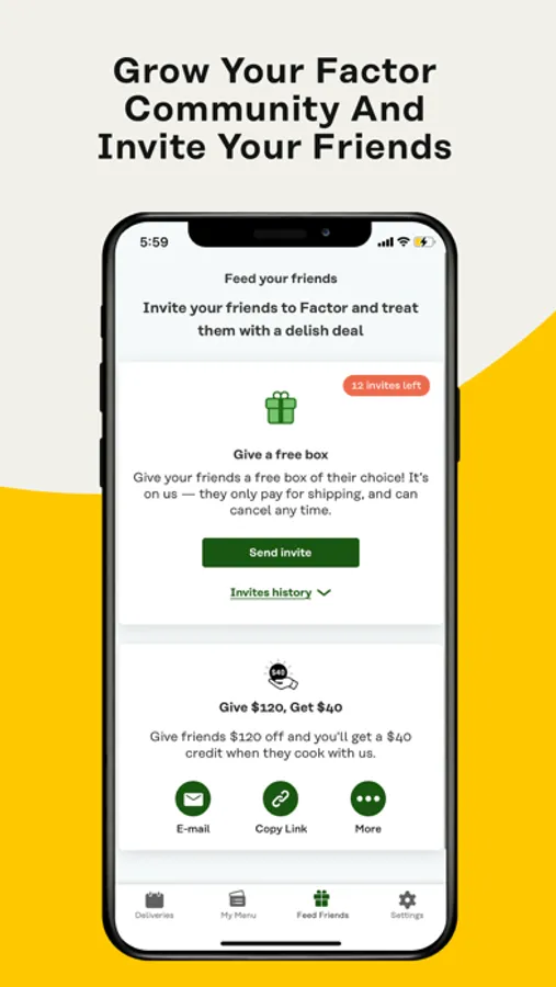 The Factor food delivery app provides meals that fit all tastes and preferences. When you make choices to your meal plans, our app will personalize future weekly meal selections to keep you diet fun and exciting.