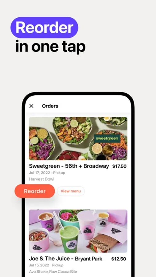 Repeat your previous order to get your faves in just one tap. Previously ordered foods & drinks are now featured in a special section of the restaurant’s menu. Plus, you’ll be able to repeat your recent orders right from the main screen.