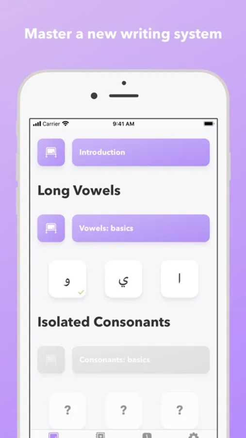 • Lessons and chapters: Abjapp splits the learning process into numerous parts (vowels, consonants, and more…) to make things easier for you;