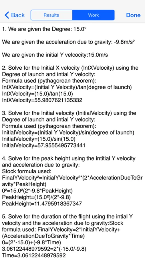 Solve your parabolic motion problems in over 15 different situations. Just provide the available information and the available solutions will be calculated along with the work. The step by step analysis explains how to solve for every specific situation using the provided information.