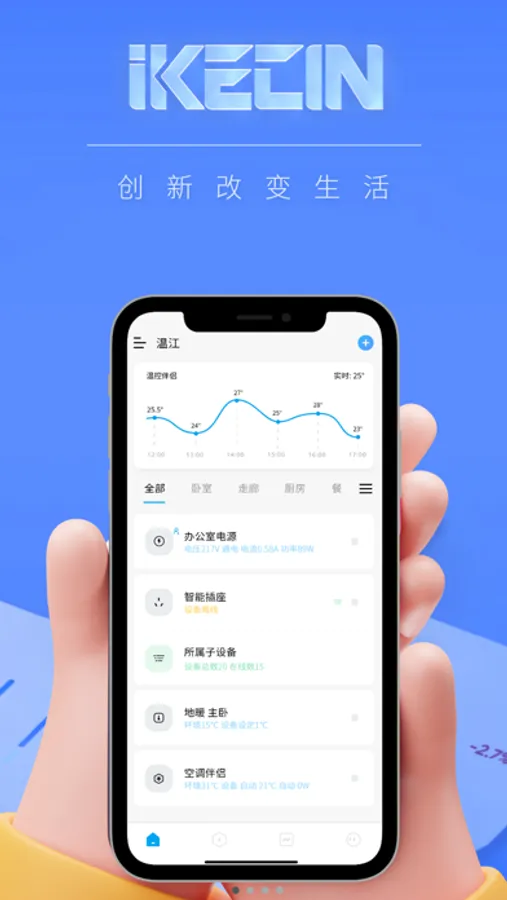 This is a iKECIN Smart home management software for you to provide remote management of a variety of devices, a key upgrade of the traditional home appliances, so you and your family to easily enjoy intelligent life.