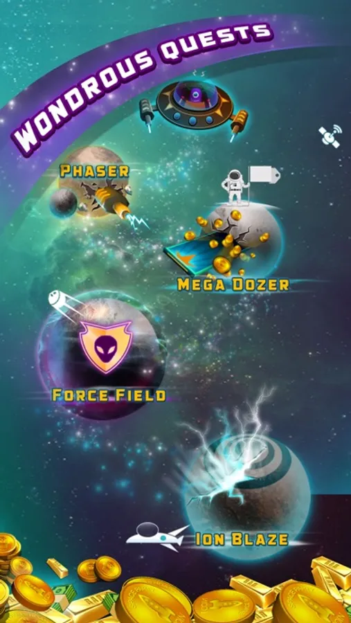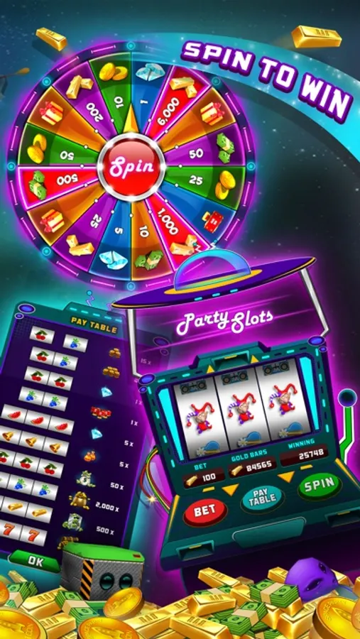 Space Party offers the most exciting, fast-paced, action oriented coin experience in the universe! Fly through the galaxy while collecting rare prizes, completing quests, and cashing in on your coin stash! Take a break from your star travels and play our wheel of fortune and slot mini-games for amazing prizes and bonuses!