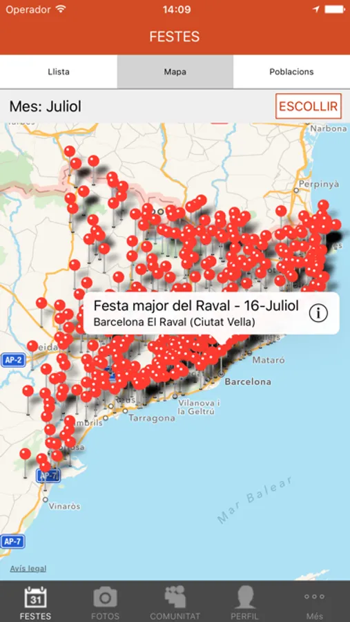 Podreu veure el programa de totes les festes populars a l'APP amb ubicació a un mapa incloent guia GPS. Podreu filtrar-los per província i població. També podreu confirmar la vostra assistència als esdeveniments i realitzar el pagament d'aquells que no siguin gratuïts si els Ajuntaments o organismes responsables ho permeten.