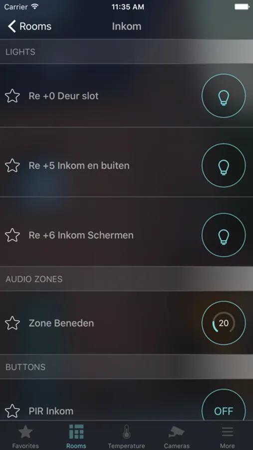 On the "favorites page" the user can add his or her favorite controls providing easy and faster access.
