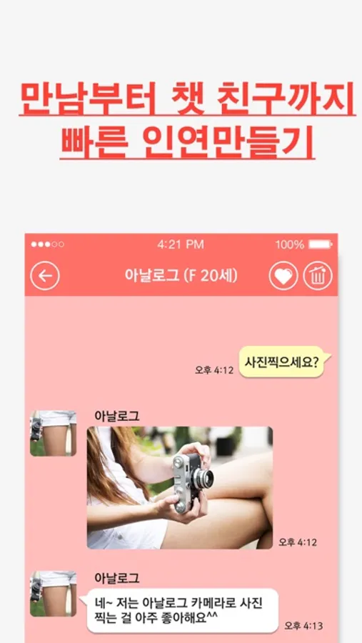 - 쪽지를 통해 대화하기가 시작되면 무료로 대화를 나눌 수 있으며, 대화 중에 사진교환도 가능합니다.