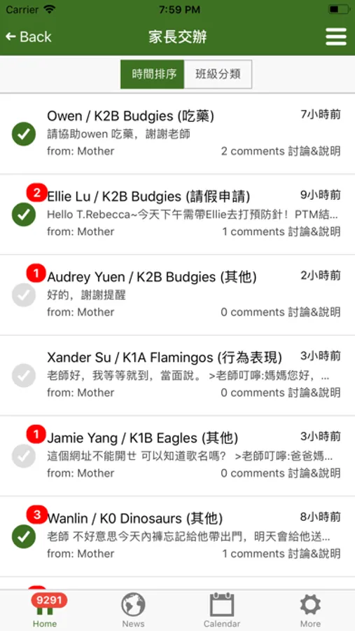 2. 班級通知單:接收班級教師或學校發送的訊息。