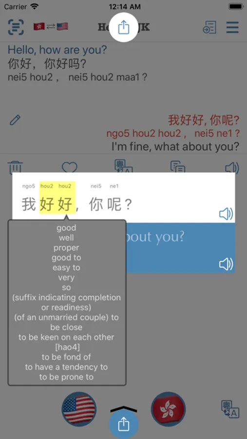 Hello CJK is a simple app that can voice translate English to Chinese[Mandarin, Cantonese], Japanese[Hiragana, Katagana], and Korean[Hangul]. Vice versa, it can also voice translate CJK to English. It can scan printed CJK text into digital format. It can romanize CJK text. It can also read CJK text out loud and can also display the meaning of the Hanzi and Hangul.