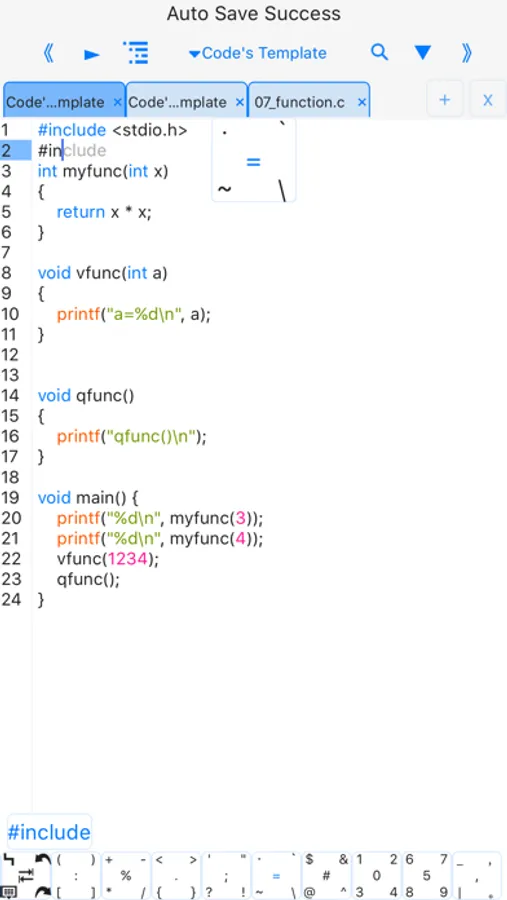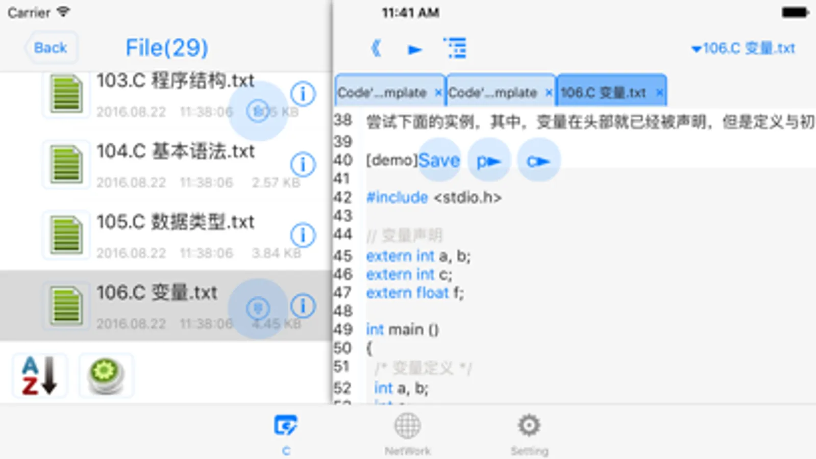 This is an ios c app,you can learn,run,share c code . (offline compiler)