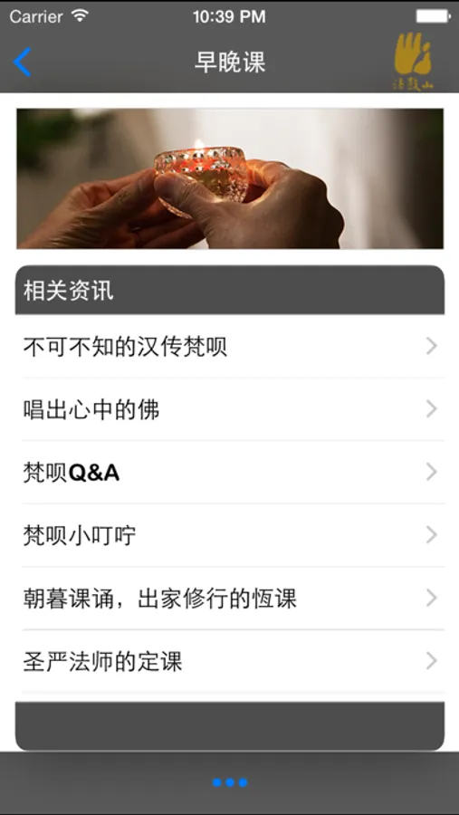 「早晚课」APP收录了圣严法师《心的经典-心经新释》、《佛法纲要-四圣谛、六波罗蜜、四弘誓愿讲记》、《普贤菩萨行愿赞》、〈佛说阿弥陀经-观照自性的归处〉、〈四弘誓愿-亲证菩提的愿心〉、〈普贤菩萨行愿赞-证入法界的万行〉、〈心经生活-找回生命的刻度〉及《人生杂志》等50种文字及影音开示,引领您心游于法海之中,身如沐在三宝的慈光里,以此恒常的定课面对一切顺逆境界,不断增进道业,如圣严法师所说:「时时心有法喜,念念不离禅悦。」的成长体验。