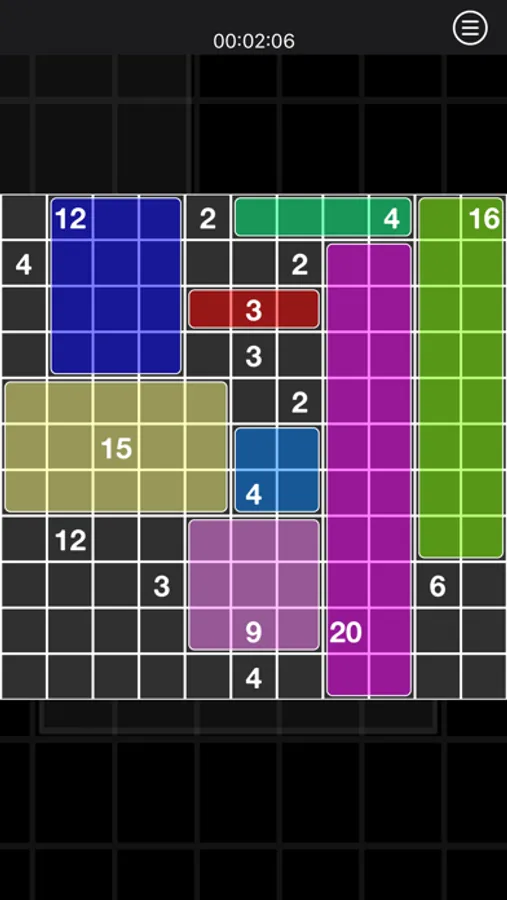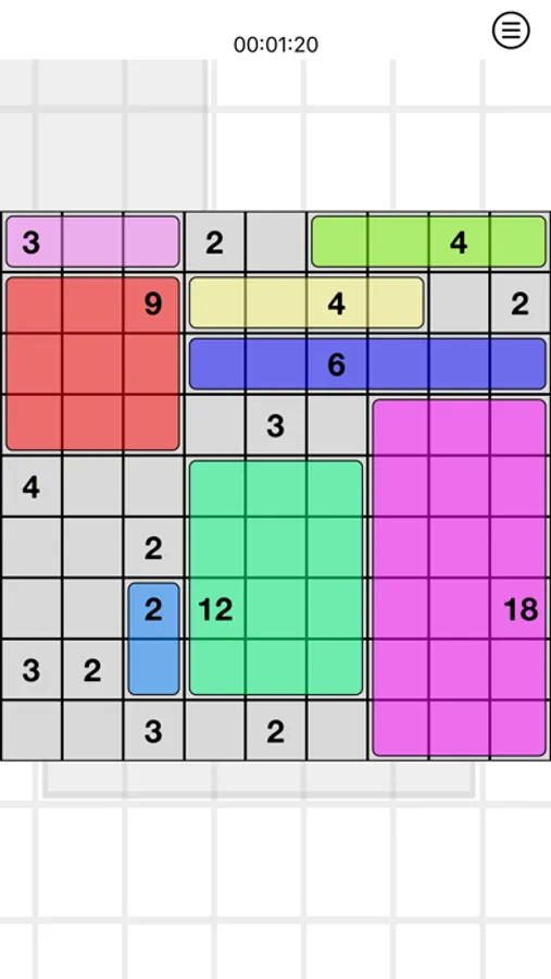 The goal of the game is to fill the game board with rectangles. Each rectangle must contain one number from the board. That number defines the area of the rectangle. Rectangles should not overlap.