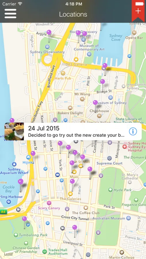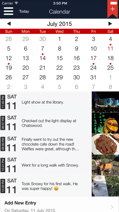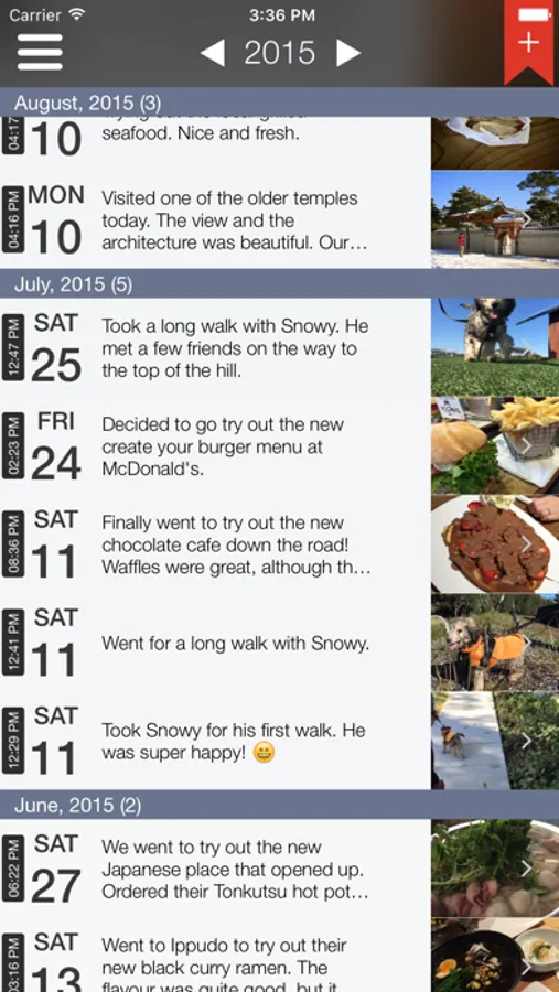 Automatically create entries based on places you have visited throughout your day. Photos taken will be imported into corresponding entries.