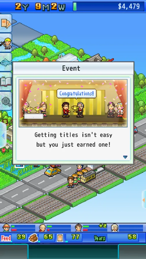 Try searching for "Kairosoft" to see all of our games, or visit us at https://kairopark.jp. Be sure to check out both our free-to-play and our paid games!