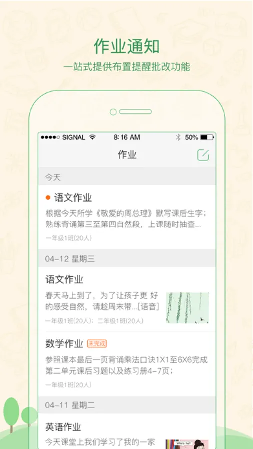 1、支持图文作业,随拍随发。让家长第一时间了解孩子的情况,更好的配合老师教学。