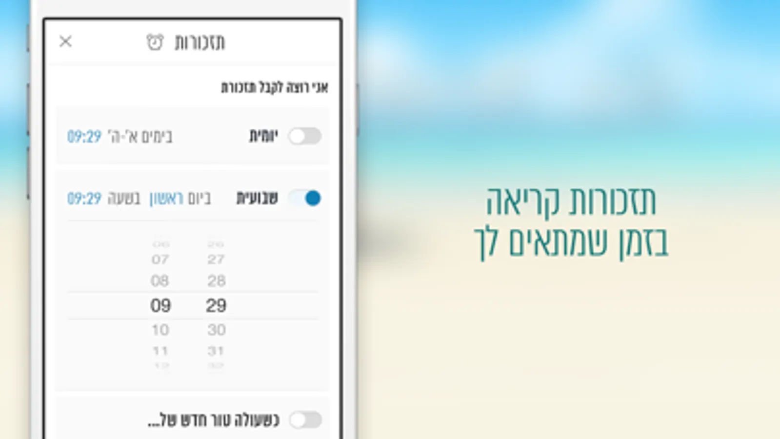 באפליקציה אפשר להגדיר תזכורות קריאה אישיות - יומיות או פעם בשבוע, בשעות הנוחות לך. אפשר גם לעקוב ולקבל תזכורת בכל פעם שעולה טור של כותב אהוב.