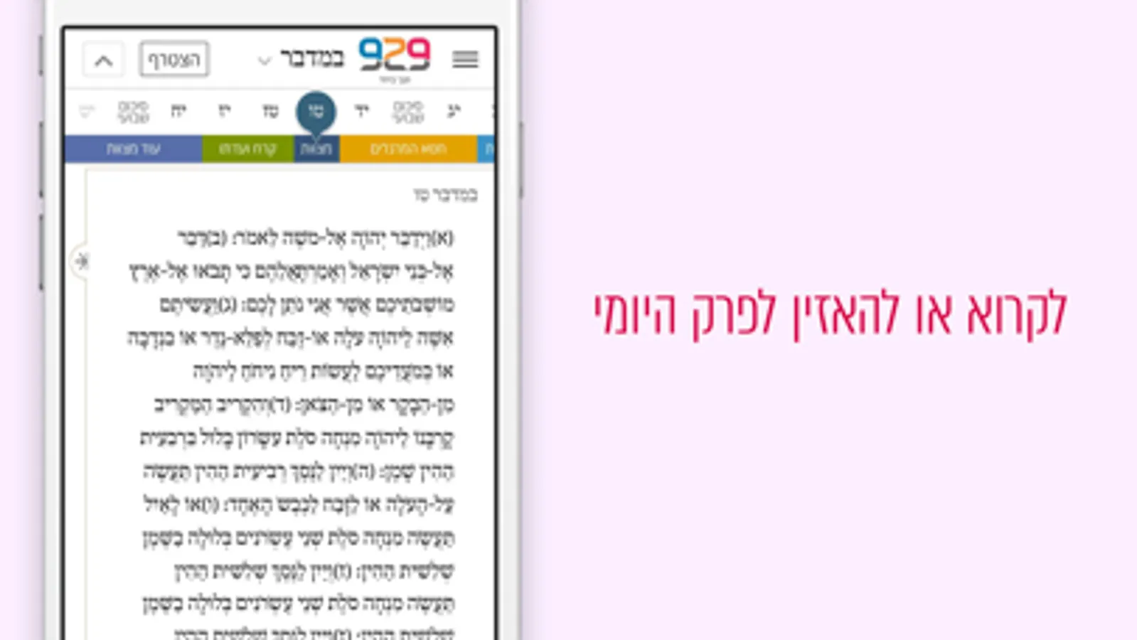 מיזם 929 מזמין אותך לקרוא תנך בעיניים חדשות: פרק אחד, כל יום, לפי הסדר. כולם קוראים יחד, וכל אחד ואחת לחוד. באפליקציה, באתר או עם תנך ביד; עם חברים, עם ילדים או כאתגר אישי.