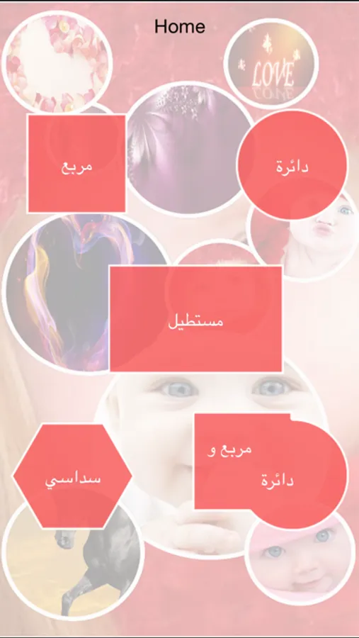 يمكنك من خلال التطبيق اختيار شكل الصوره النهائية كيف ستبدو حيث انه يمكنك اختيار شكل مربع او دائرة او مستطيل او شكل سداسي ثم يقوم التطبيق بانشاء صوره واحده عشوائية من الصور التي قمت باختيارها.