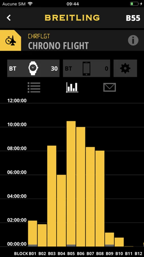 The EXOSPACE application allows the user to verify and adjust the main settings of the EXOSPACE B55 chronograph at a glance, but also to have rapid access to its different functions. The smartphone memory allows the different measurements of the EXOSPACE B55 chronograph to be saved so that they can be viewed, compared or even transferred to other applications. The smartphone screen offers unparalleled reading comfort, thus giving stored data a new dimension.