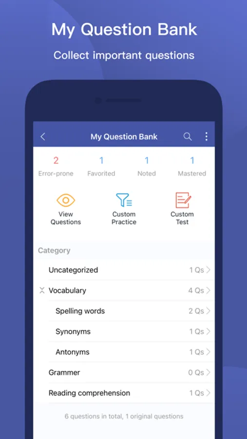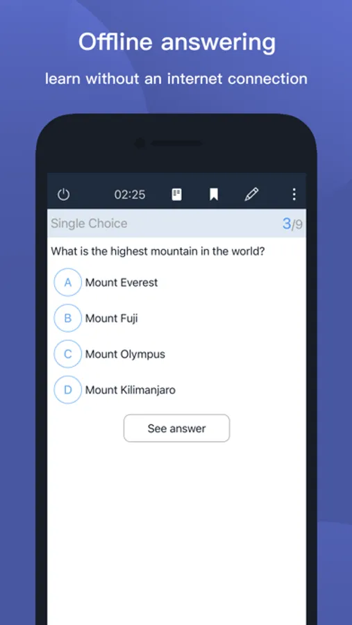 Exams are saved locally on your phone, so you can search exams quickly using keywords. You can also find the exams and questions you recently took.