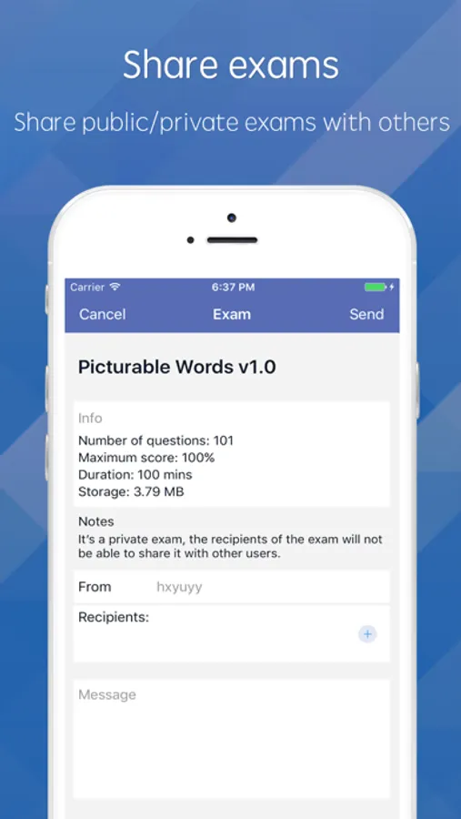 If you are a teacher, sharing exams is an alternative way to assign homework to your students. If you are a student, share your study quiz with your classmates and test each other as much as possible in order to discover even more details and areas you may have overlooked.