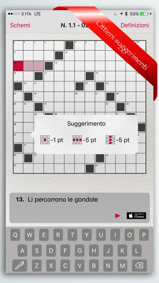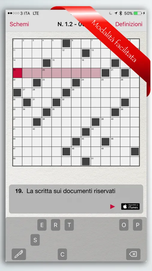 La parola è per tutti: per ogni schema si può scegliere tra due livelli di difficoltà: normale e facile. Nella modalità facile la tastiera visualizza solo le lettere che fanno parte della soluzione della definizione selezionata. In entrambe le modalità è possibile richiedere un aiuto per una singola lettera o un’intera parola. Con un tap prolungato su una cella è inoltre possibile chiedere un suggerimento.
