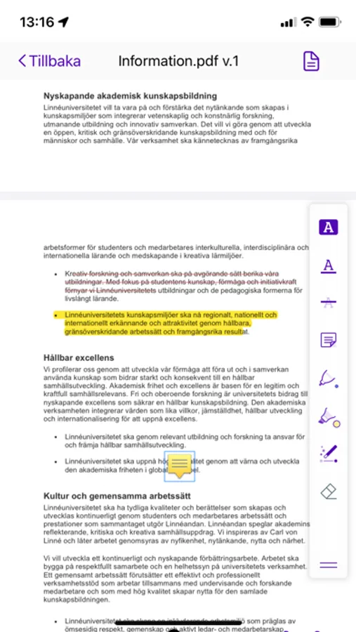 Different tools for highlighting annotations in different styles and colors. Replace your yellow post-it with digital notes and find them quickly.