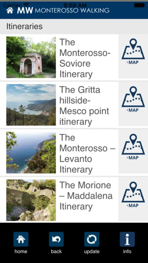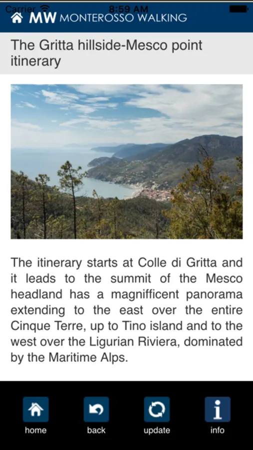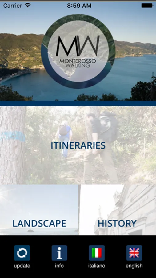 The first App that offers six itineraries in the Monterosso al Mare territory, which comprise an area of roughly 25 km².