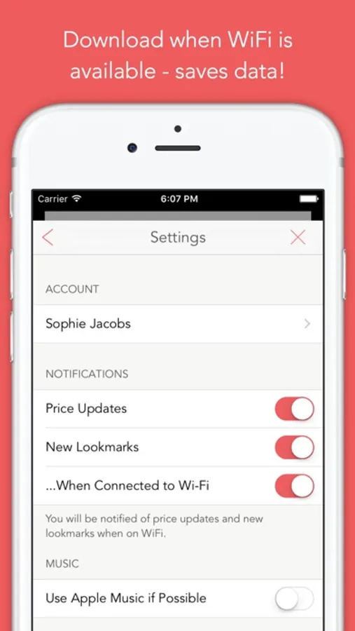 Don’t waste your data by downloading iTunes content over a cellular network. Lookmark notifies you when Wi-Fi is available.