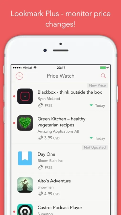 With a Lookmark Plus subscription you can be notified of prices changes for all content and app updates in the App Store or the Mac App Store.