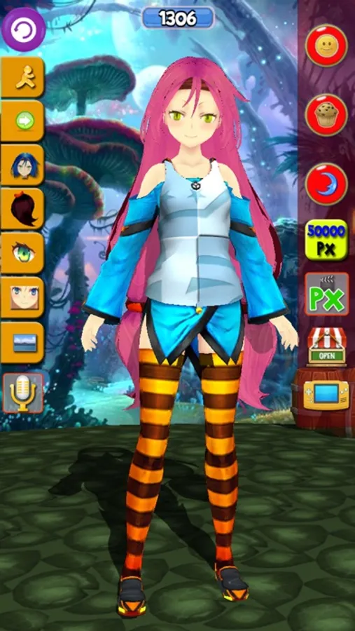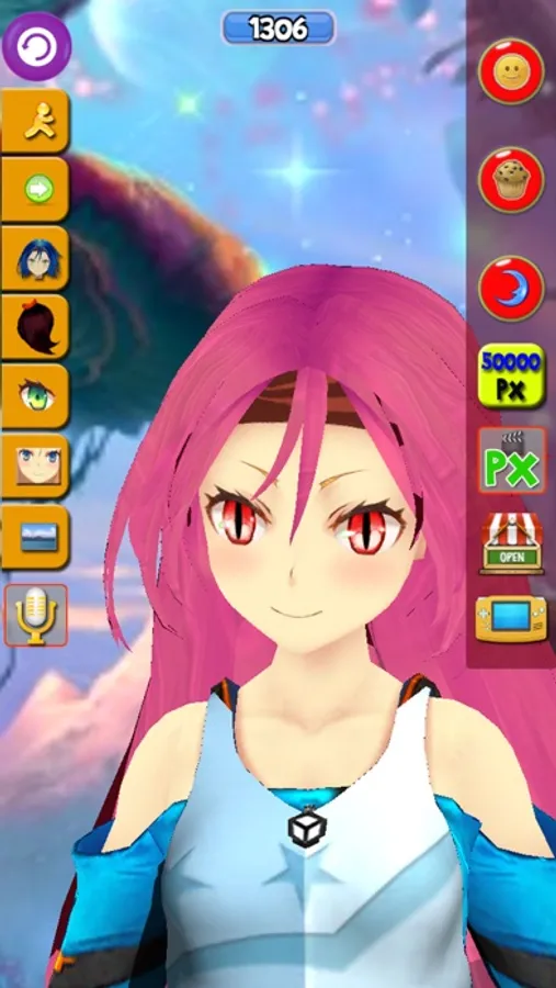 Your girl anime or manga is now on your device. You can change the eyes, hair, clothes. Choose from beautiful landscapes in the background and records the image as wallpaper or share with friends. Take care and feed your manga girl Chan.