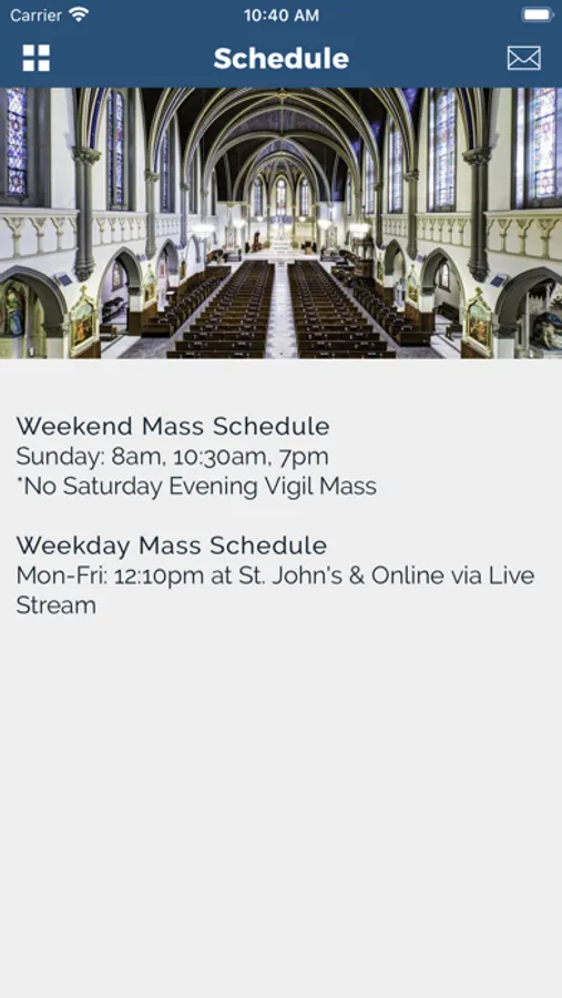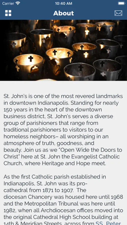 The St. John the Evangelist Catholic Church in Indianapolis, IN mobile app is packed with features to help you pray, learn, and interact with the Catholic community.