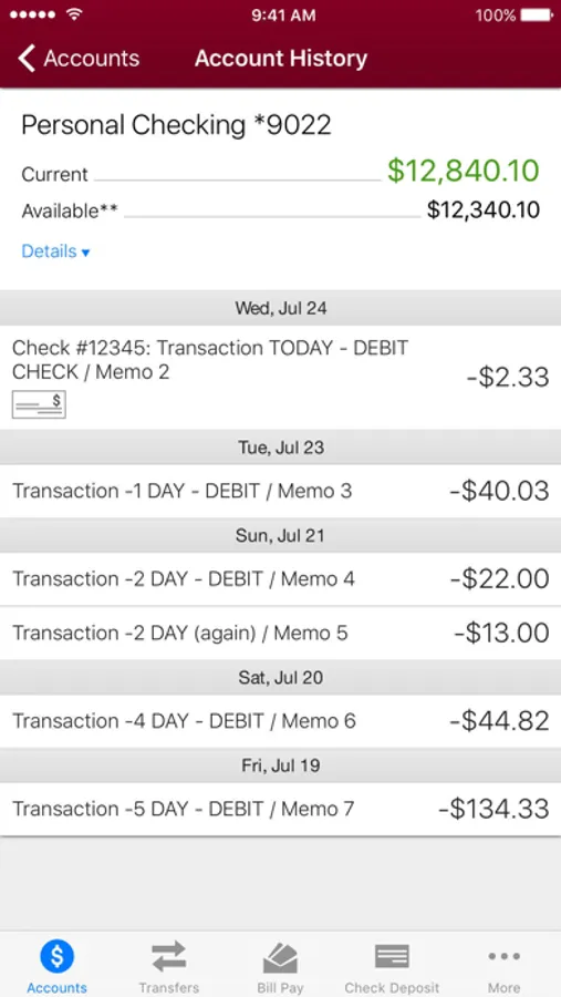 • Check available balances & transaction history