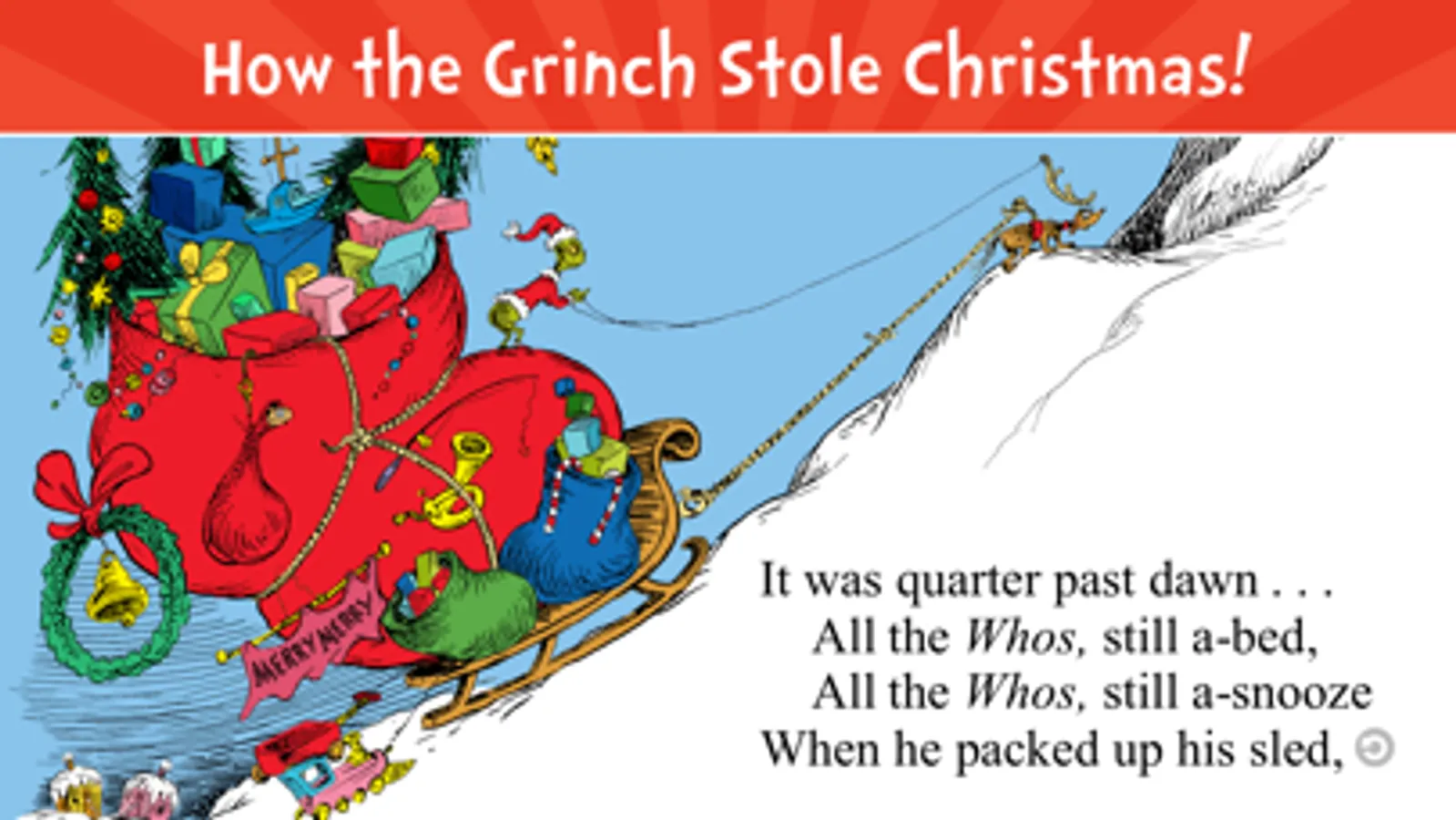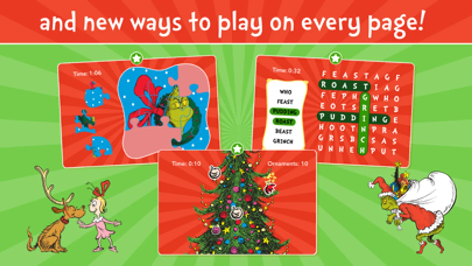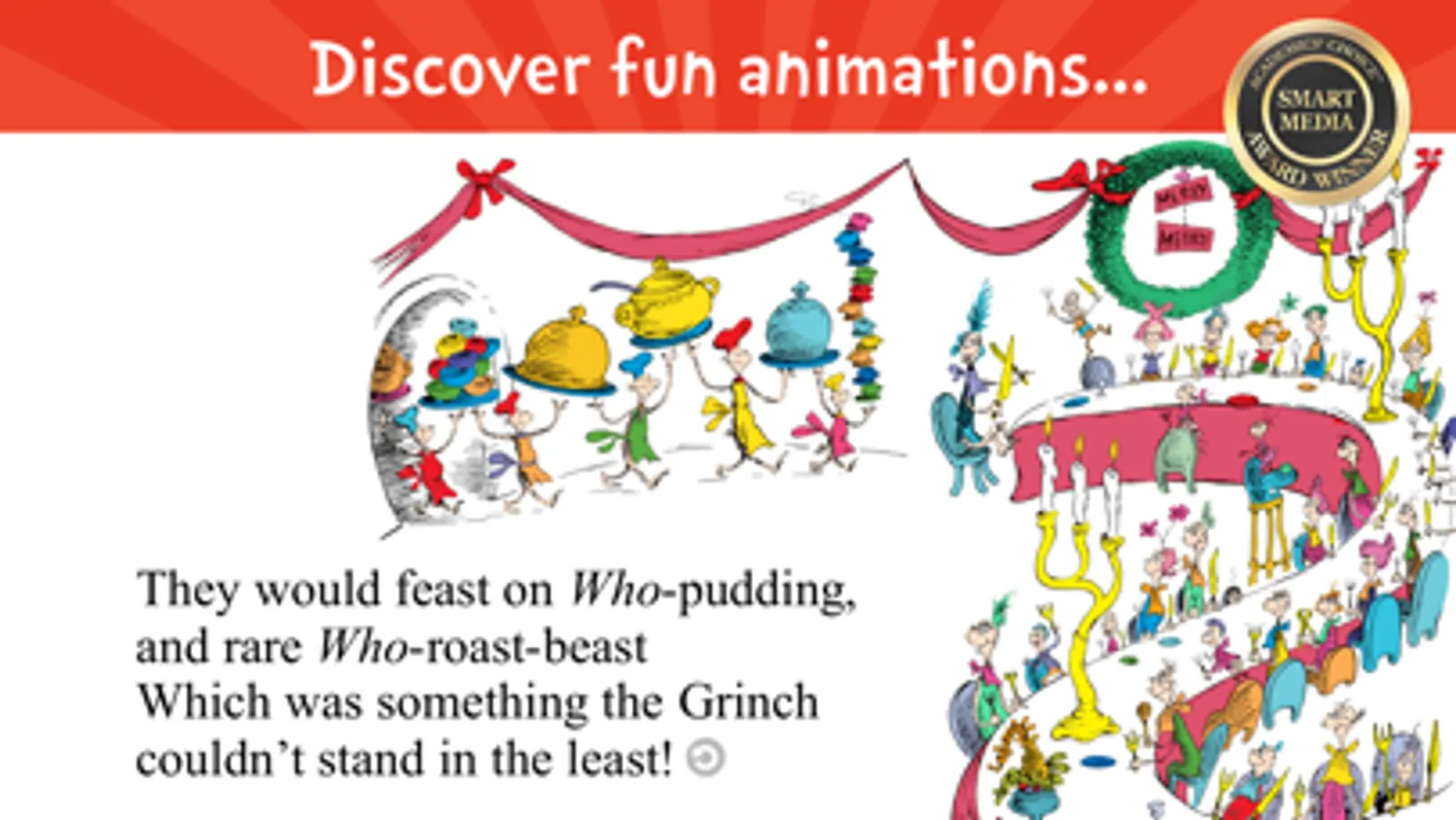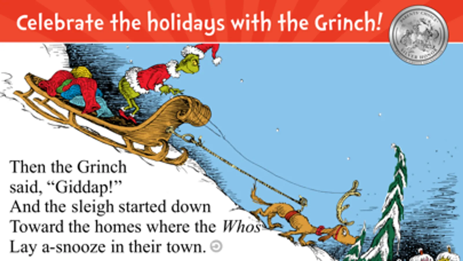 The Dr. Seuss classic, "How the Grinch Stole Christmas!" comes to life with playful interactivity, delightful animations and fun activities!