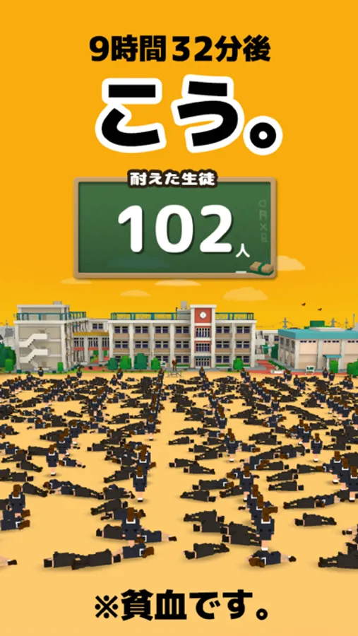 朝礼で校長先生に長話しをさせて、生徒を貧血させないように得点を競うユニークなアプリです。