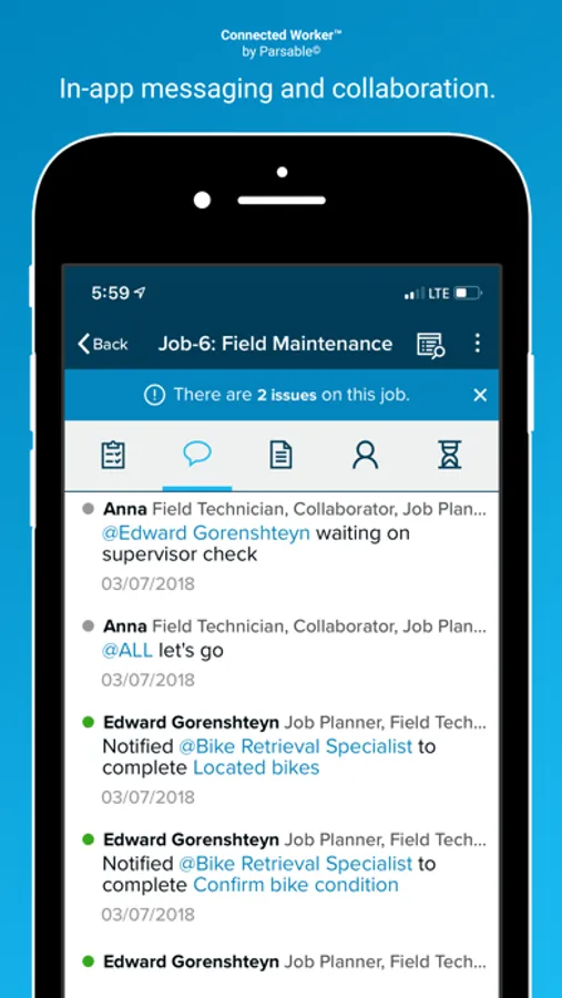 The Parsable App is your “single pane of glass” to mobile work instructions, rich-media SOPs, digital data capture and in-app messaging. With Parsable, industrial teams have everything they need to work smarter and more efficiently, collaborate with co-workers & supply chain partners and digitally execute jobs — even in areas with poor or no internet access.