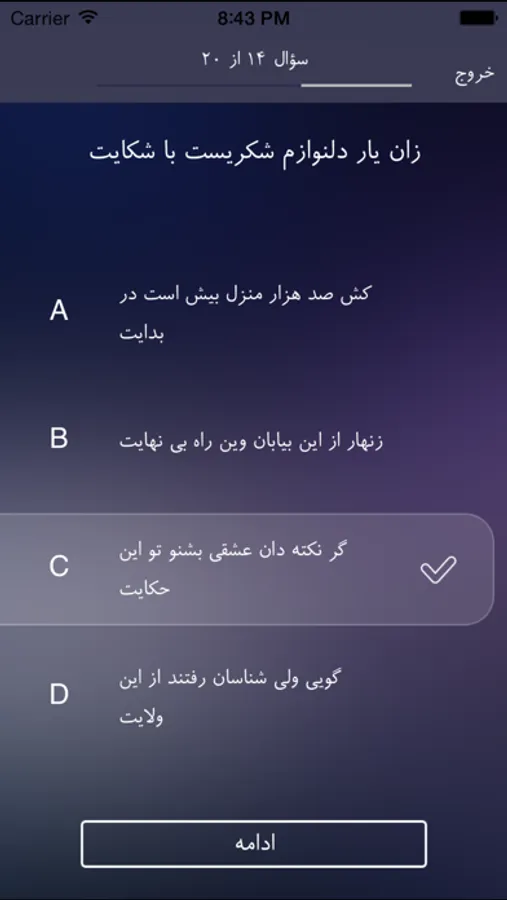 • مصرع دوم غزل را بر اساس مصرع اول نمایش داده شده انتخاب کنید.