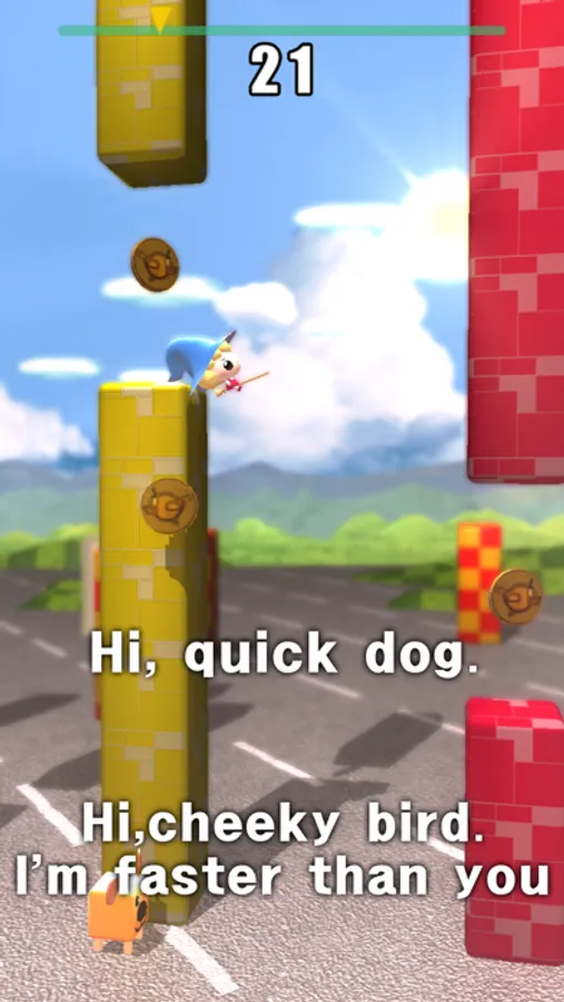 Little witch: What? What a laugh! Let's compete who can avoid the pillar better.