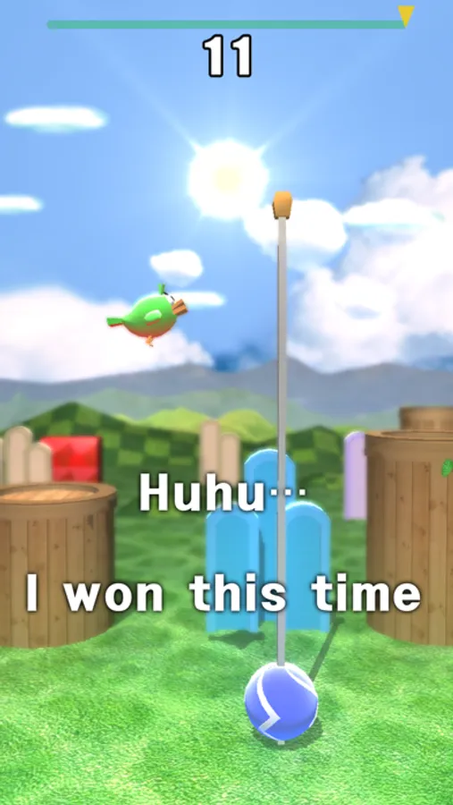 Cheeky bird: What a laugh! You'd better fly if you can. You won't pass even a pillar.
