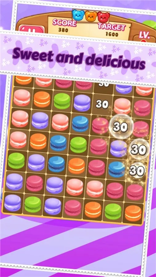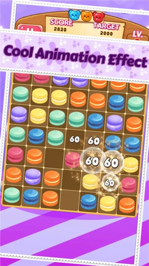 3. Eliminate the more macaron cookie line quickly can get extra scores.