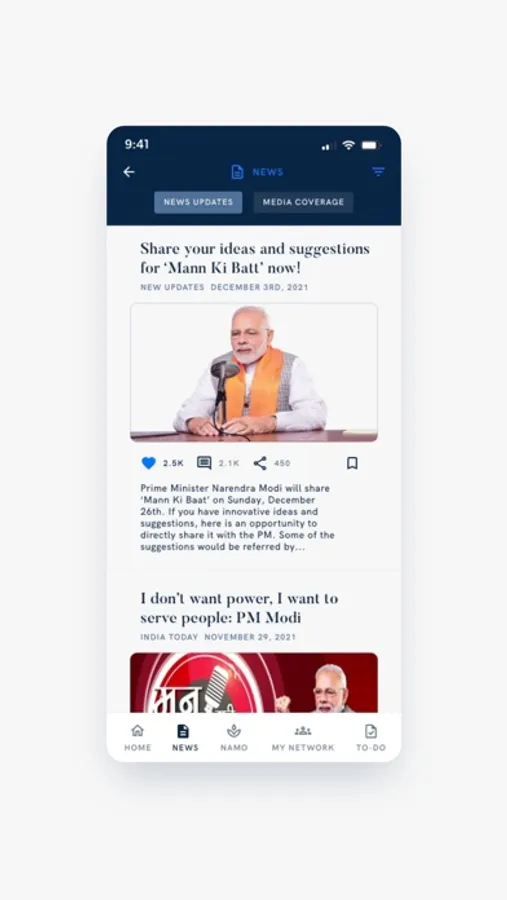 Official Mobile App of Narendra Modi. It brings to you latest information, instant updates & helps you contribute towards various tasks. It provides a unique opportunity to receive messages and emails directly from Prime Minister Narendra Modi.