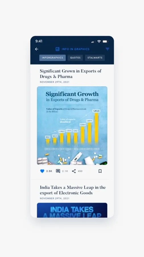 • Attractive infographics that illustrate the work of the NDA government to transform India.