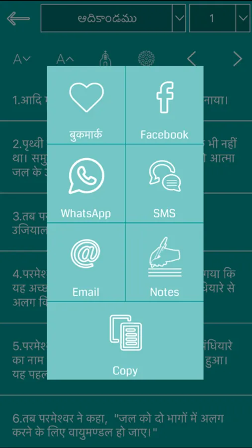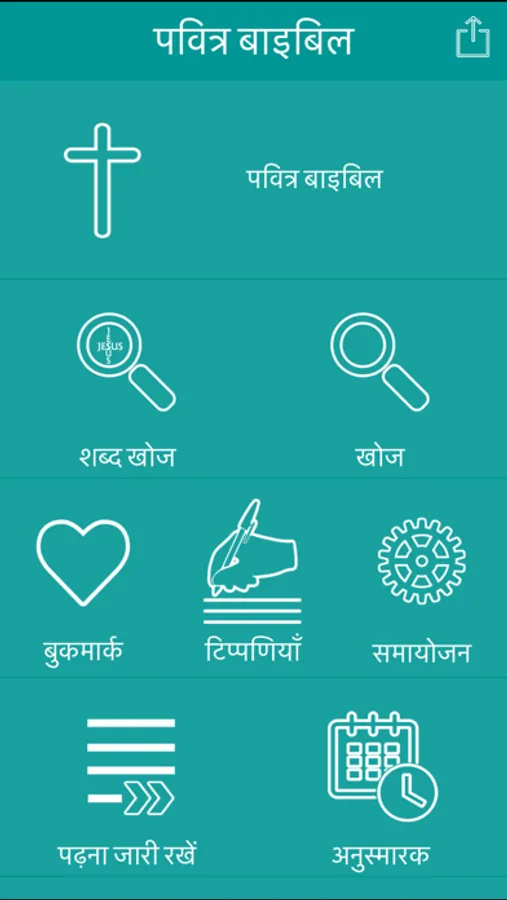 - Support for sharing the Hindi Bible in social media (Facebook, Twitter, Whatsapp)