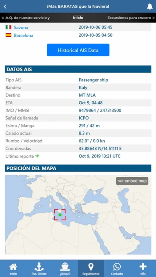 Sigue tu barco (para rastrear en tiempo real su crucero)