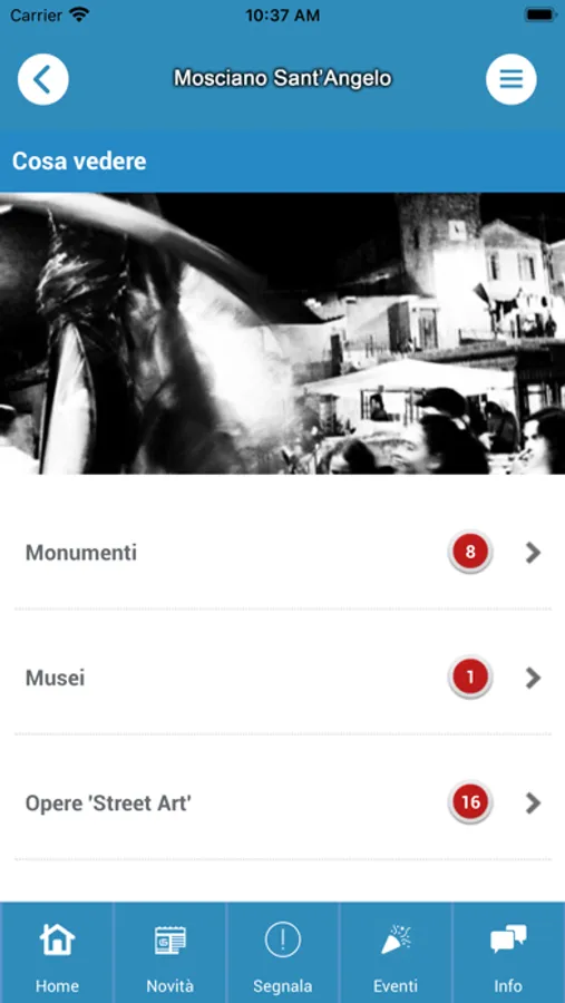 All’interno dell’App trovi tante informazioni e indicazioni del territorio e degli eventi oltre a vari servizi utili per essere sempre aggiornati sulla vita di Mosciano Sant’Angelo. Nella fattispecie è possibile visualizzare: