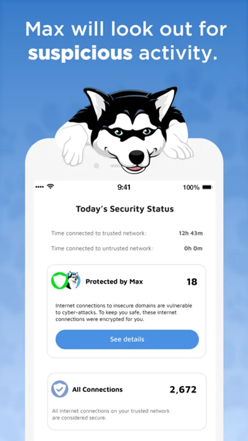 Meet Max the Husky, your loyal Phone Guardian. While you browse the web, he stands guard over your personal data 24 hours a day, 7 days a week. Max adds an extra layer of protection so you can use your favorite websites online with total peace of mind. Requiring no registration or complicated setup, Phone Guardian ensures your online security while you share photos, shop online or chat with friends.