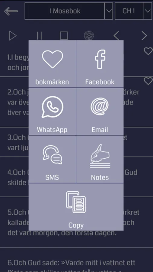 -Support for sharing the bible in social media (Facebook, Twitter, Whatsapp)