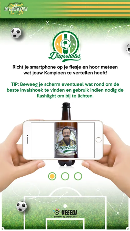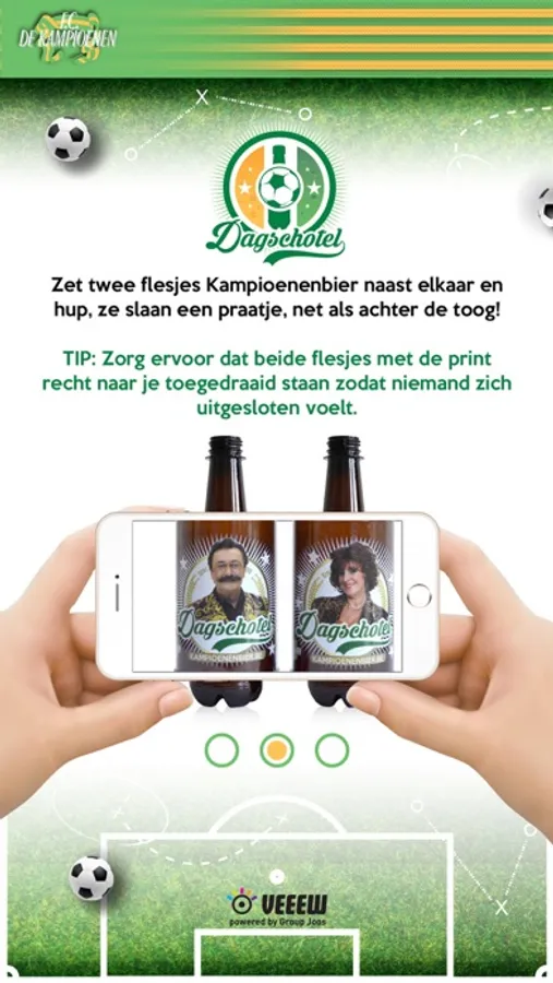 De Dagschotel-app wekt jouw Kampioen tot leven! Op elk flesje Kampioenenbier staat een personage uit je favoriete serie afgebeeld. Download de app en kijk via het scherm van je smartphone of tablet hoe Boma en co hun zegje doen. Zet je twee flesjes naast elkaar? Dan slaan ze een praatje! Verzamel alle Kampioenen en ontdek alle conversaties.