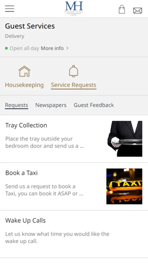 With our new app you are able to explore our hotel before you arrive, including our in-room dining menu, hotel information and much more. Once you are in-house you can use the app to place orders and requests or use the in-room iPad.
