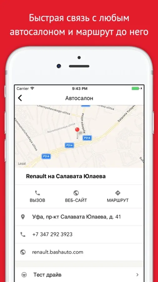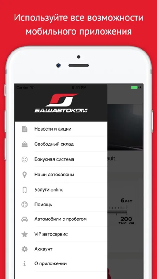 С помощью мобильного приложения вы можете быстро записаться на сервис или ТО в любой из автосалонов компании «Башавтоком» (Renault, Datsun, Nissan, Lada, Volkswagen, Citroen, Honda, Suzuki), оставить заявку на новый автомобиль, узнать о новых акциях и специальных предложениях, посмотреть контакты автосалона и кратчайший маршрут до него.