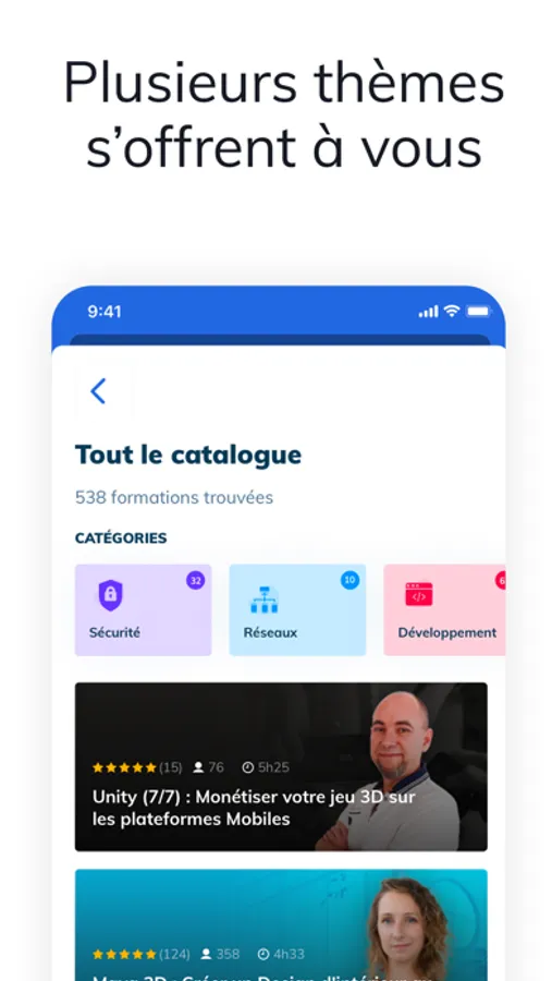 Téléchargez l'application pour explorer notre vaste catalogue de formations en cybersécurité, réseau, virtualisation, bureautique, développement informatique et bien plus encore.