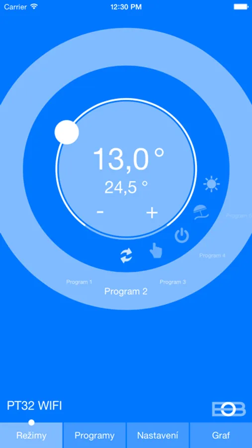 Aplikace PT32 WiFi slouží pro dálkové ovládání pokojového termostatu od firmy ELEKTROBOCK CZ. Aplikace se k termostatu připojí pomocí lokální WiFi sítě a uživatel může pohodlně ovládat a programovat termostat kdekoli v jejím dosahu. Aplikace funguje také v offline režimu, kdy uživatel může aplikaci normálně používat a provedené změny do termostatu poslat při příštím připojení.